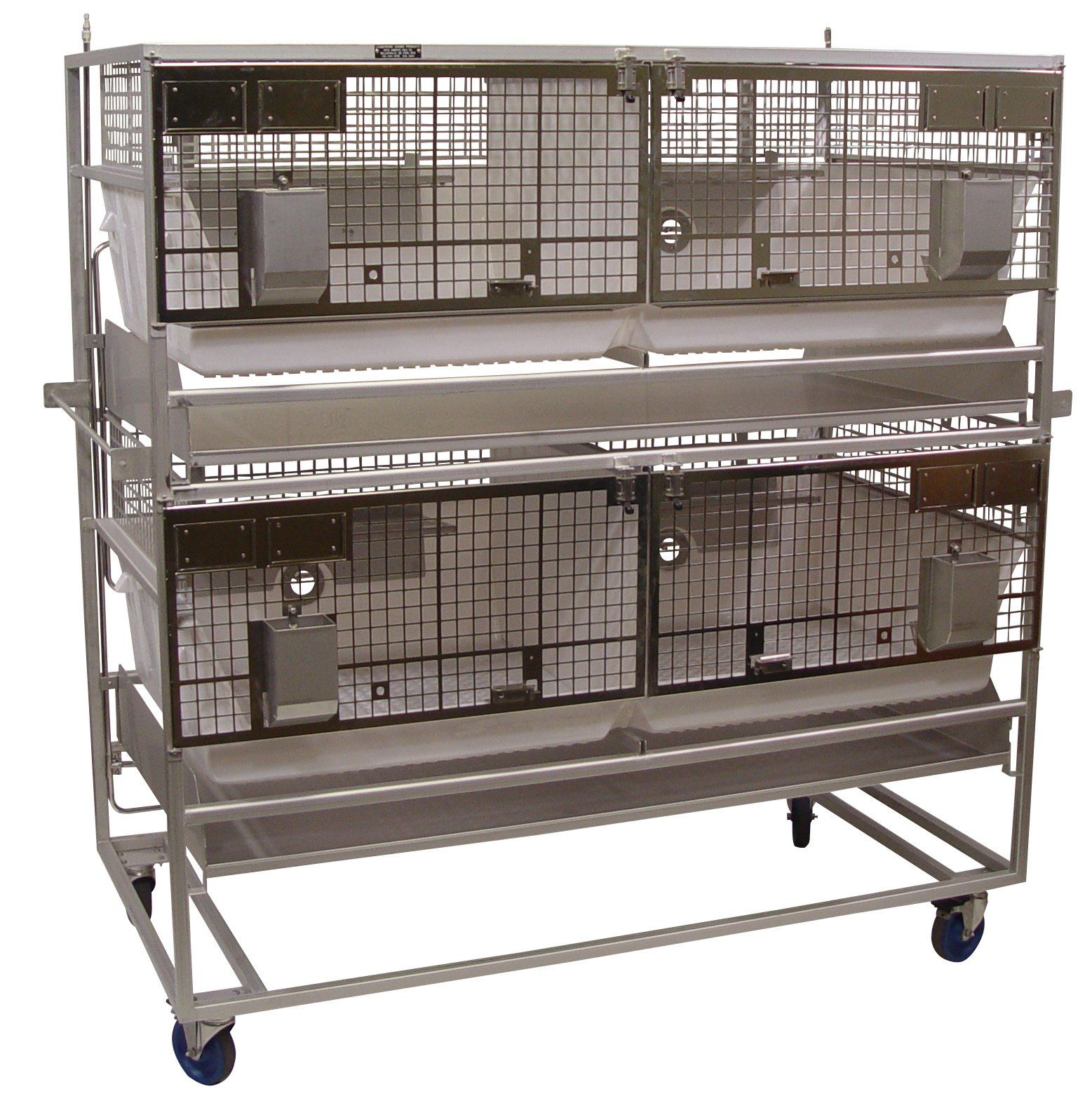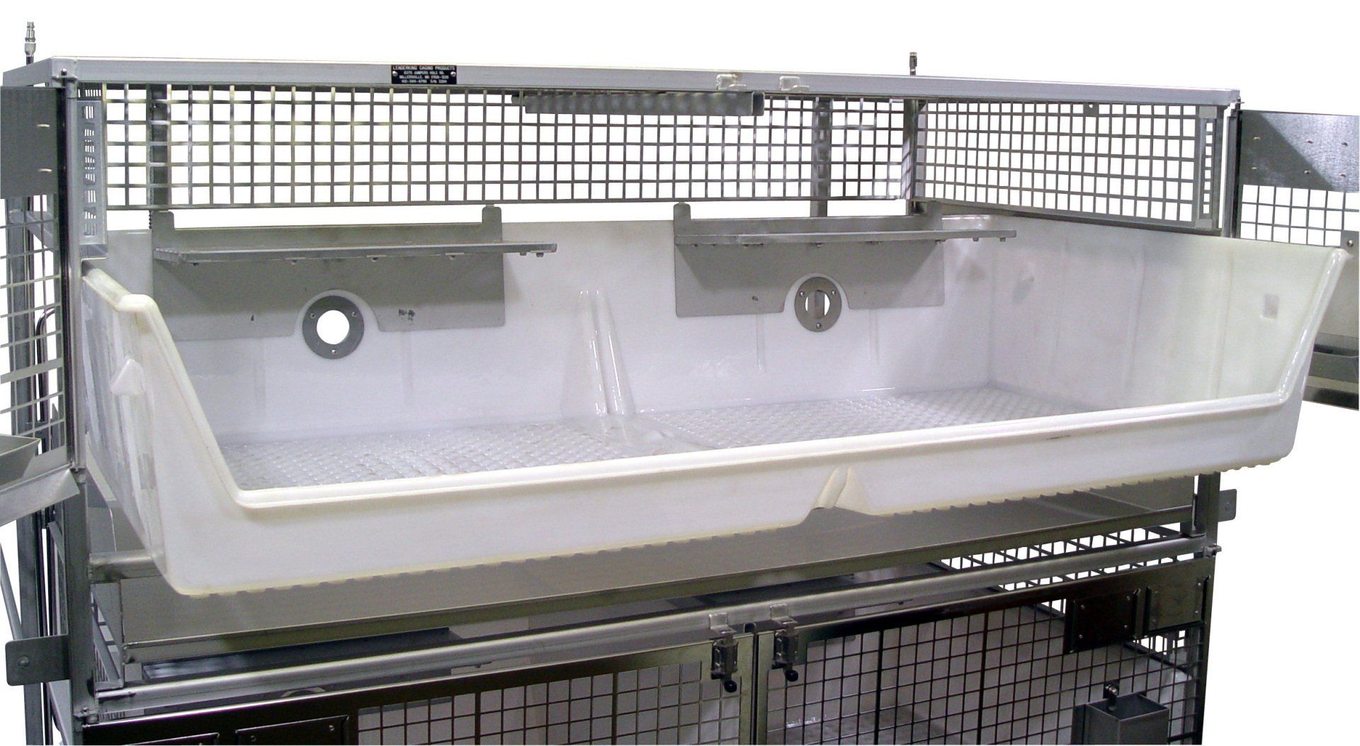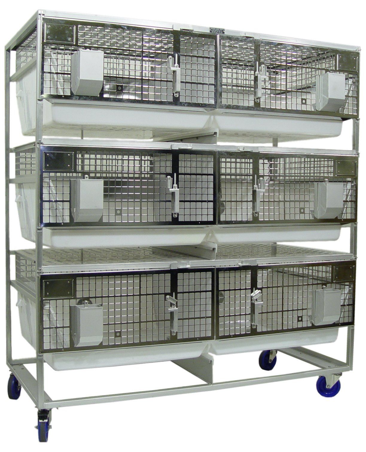 High Temperature Plastic Cages are warmer and quieter than stainless steel. The Double Wide Cage has 5.2 Sq. Ft. per cage that can be combined with the compartment next to it via the sliding panel divider. Plenty of room for nesting boxes. Socialization is so much easier, and there is no panel to remove or store. The divider can also be removed to create one large cage with a smooth transition between cages. Better than individual racks of cages that combine. When the divider is removed, there is a smooth transition to the other cage. No high lip. Large rabbits can lay across both cages and not have to stay in one side, even though you combined the cages.