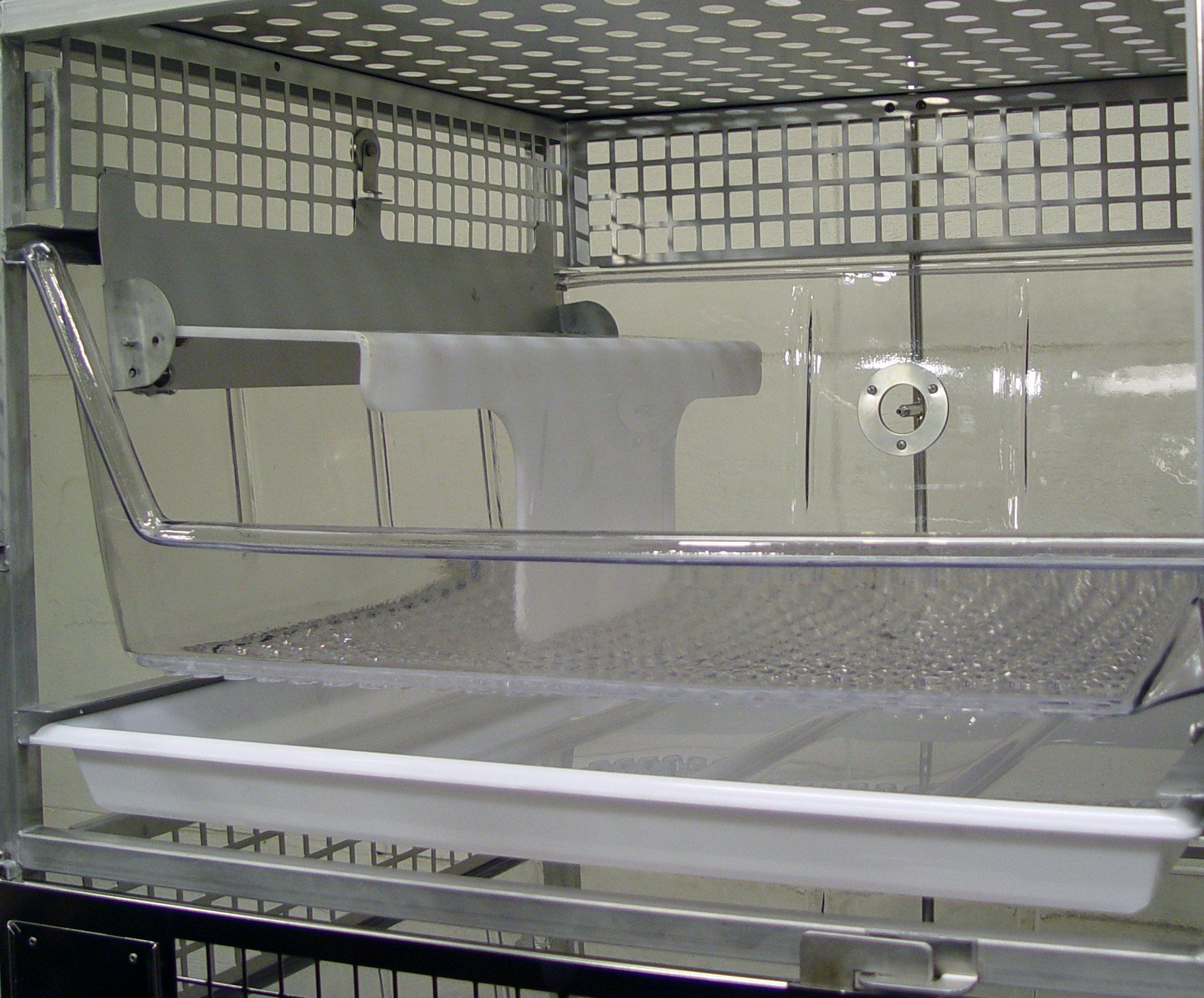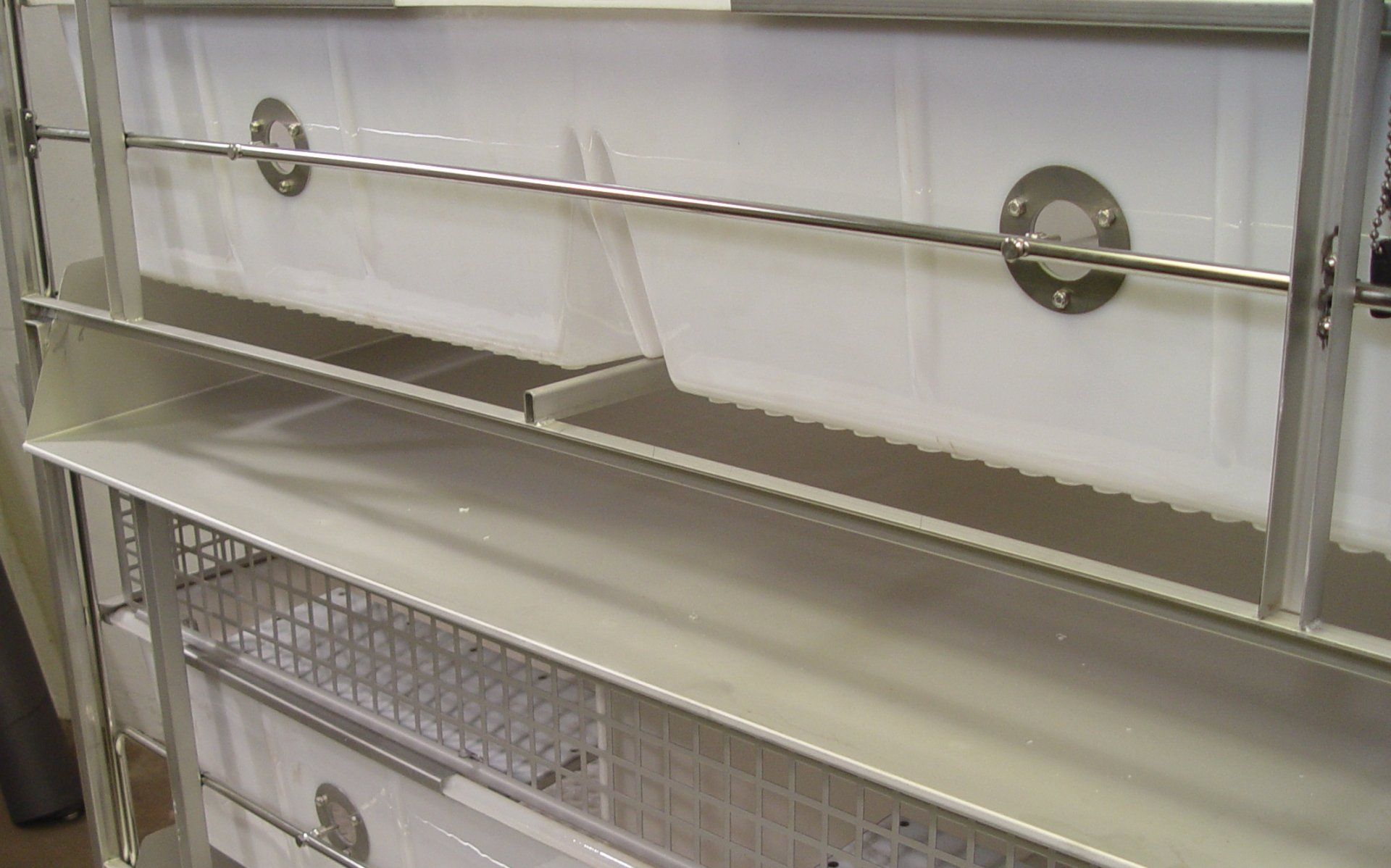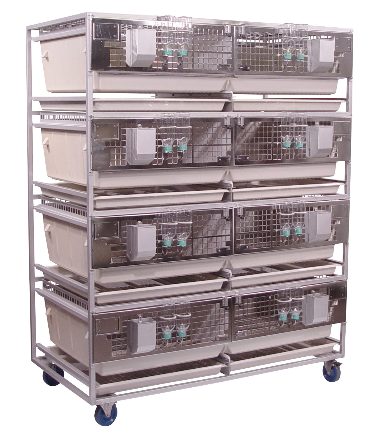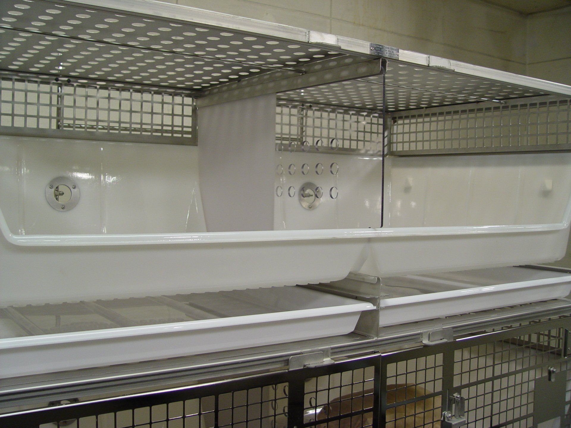 High Temperature Plastic Cages are warmer and quieter than stainless steel. The Double Wide Cage has 5.2 Sq. Ft. per cage that can be combined with the compartment next to it via the sliding panel divider. Plenty of room for nesting boxes. Socialization is so much easier, and there is no panel to remove or store. The divider can also be removed to create one large cage with a smooth transition between cages. Better than individual racks of cages that combine. When the divider is removed, there is a smooth transition to the other cage. No high lip. Large rabbits can lay across both cages and not have to stay in one side, even though you combined the cages.