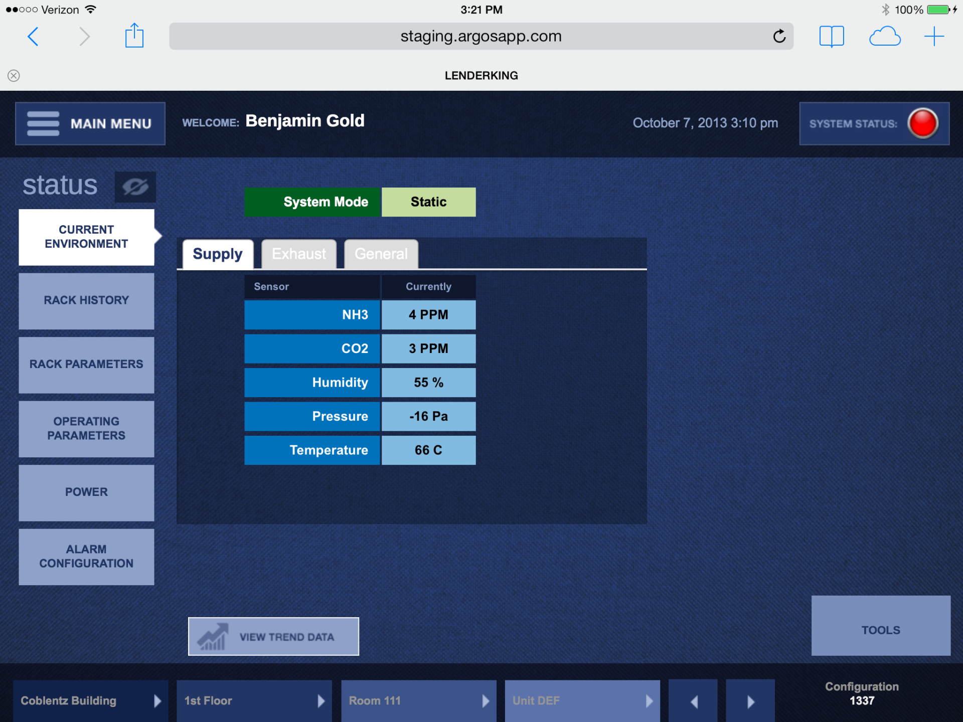Argos is a web based application allowing you to control and monitor our Air Sentry II Filter/Blowers from anywhere in the world, no matter where your racks are located, even if they are in different locations. Setup and control is easy and you can monitor, record and export rack and room environmental conditions without ever stepping foot in the lab. With multiple level of user permissions, you can maintain security over you research and data.